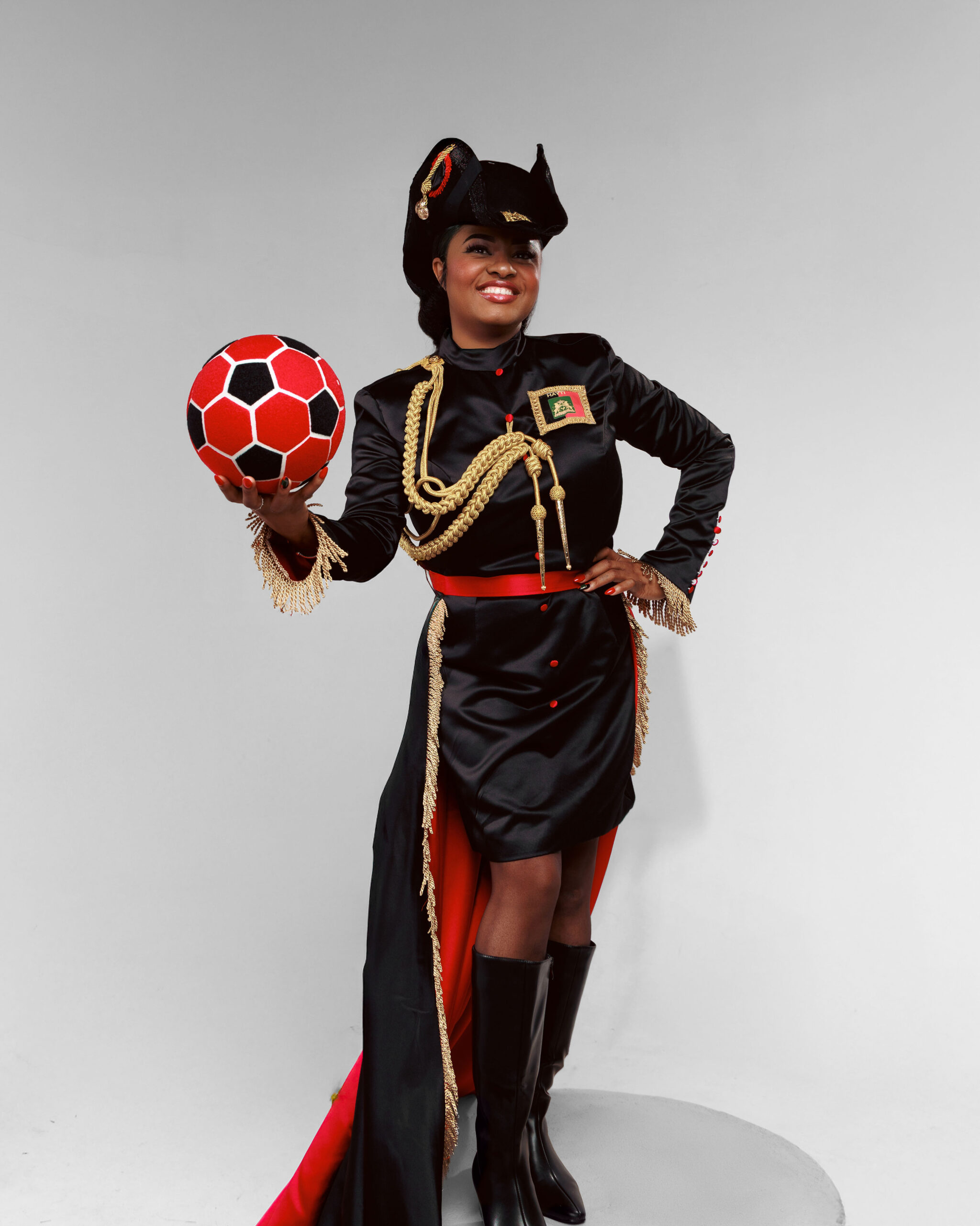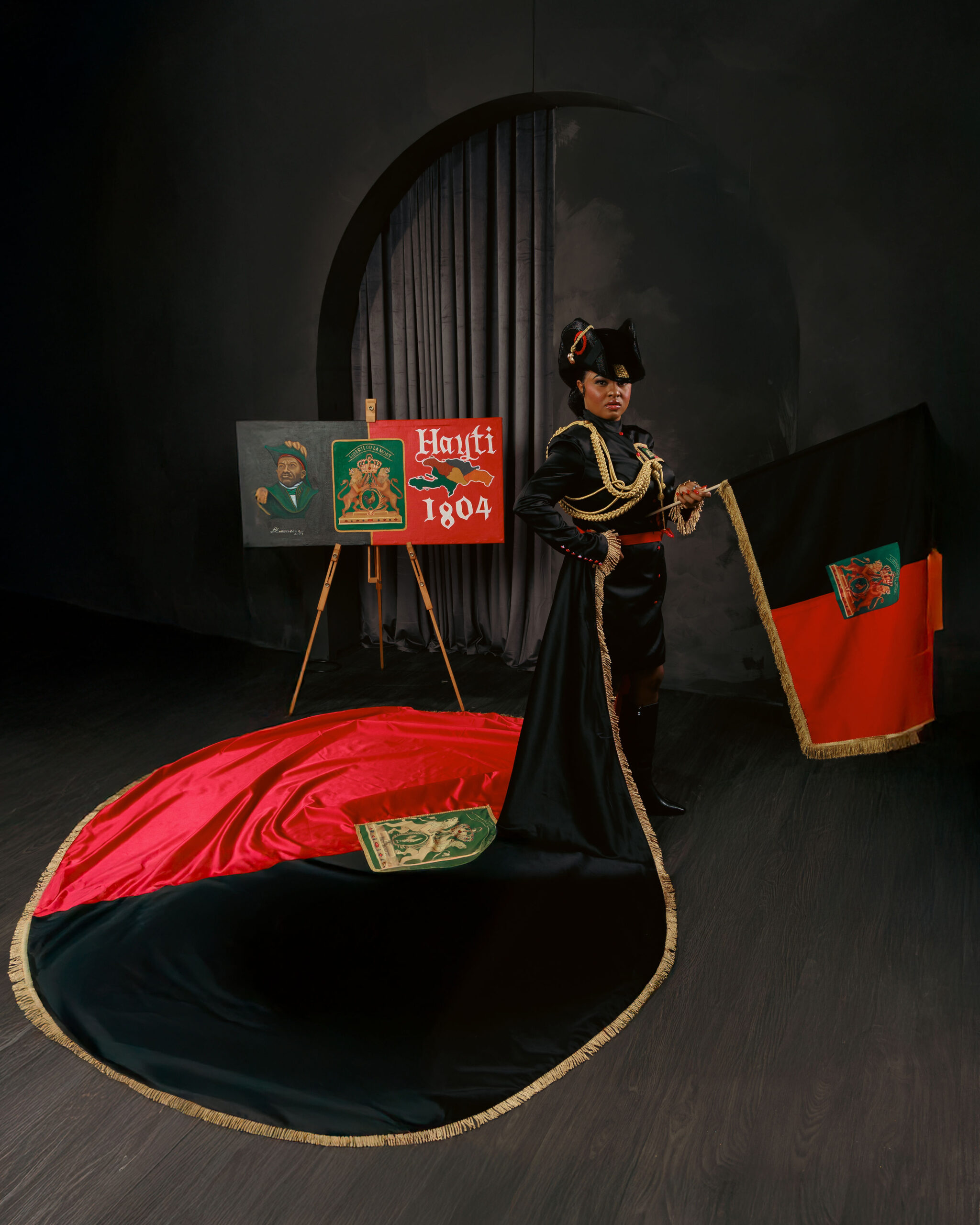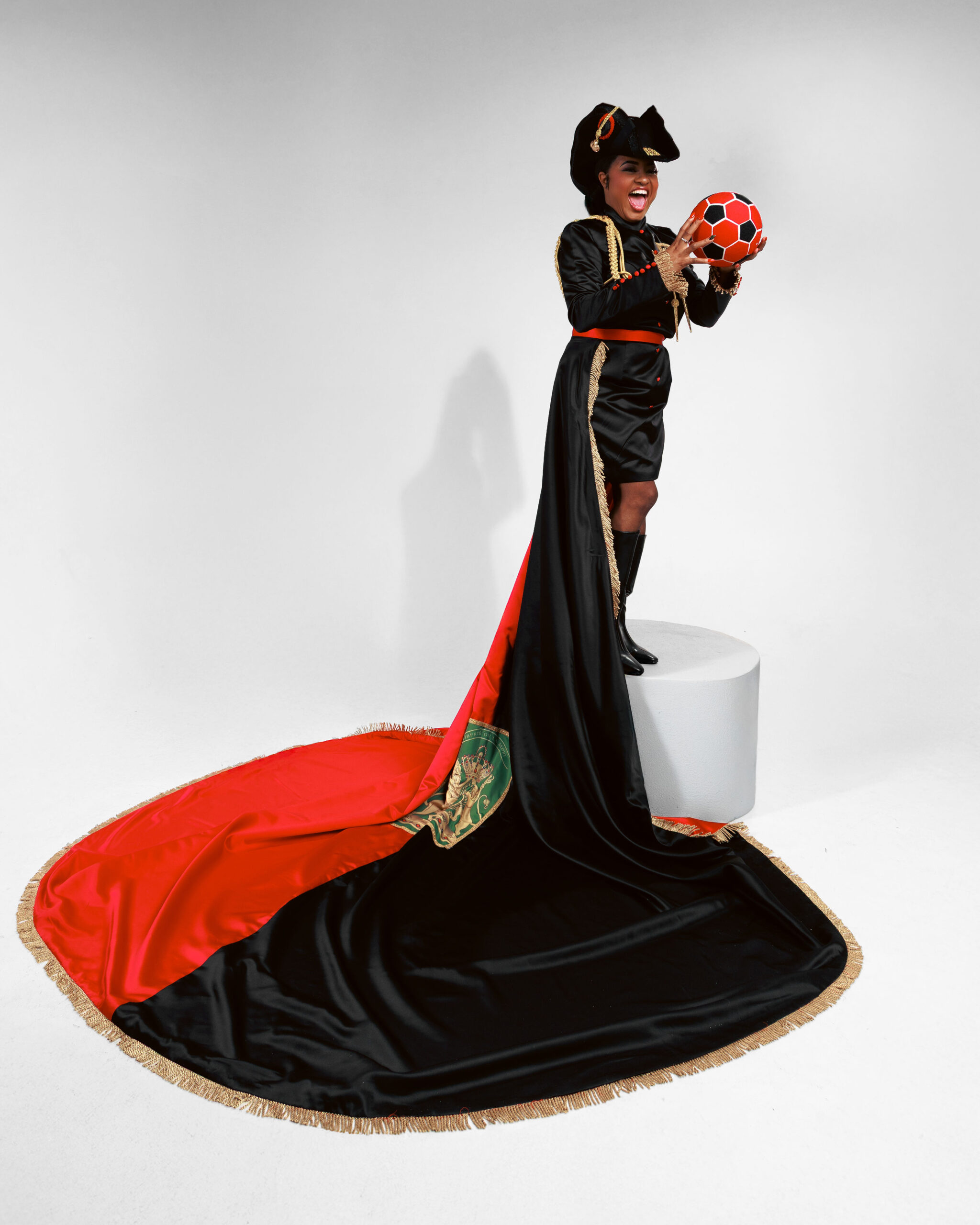 In many ways, Santia embodies a modern-day Catherine Flon, translating national pride into material form. Just as she stitched the first Haitian flag as an act of resistance and unity, Santia uses fabric, color, and design to tell Haiti’s story in the present day. Her fashion bridges her homeland with the world, transforming history into contemporary expression. Each creation is not merely worn, but carried. A visual affirmation of legacy, perseverance, and belonging.